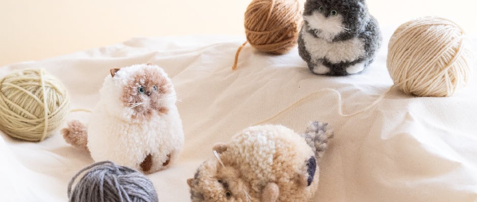 フェイジョアで染めた毛糸から生まれた、 手のひらサイズの小さなポンポン猫です。 植物のあたたかな色が動物の自然な彩りを引き出します。 サイズ:縦 約7cm 横 約6cm 奥行き 約9cm(しっぽ含む) 素材:草木染めウール(銅媒染・鉄媒染) 観賞用としてお楽しみください。 こちらはご注文後に制作する作品です。 染色からひとつひとつ手作業で制作しているため、表情や形、色味には個体差があります。掲載している写真は見本品のため実際にお届けする作品と細部が異なる場合があります。 ※7日以内に発送いたします。