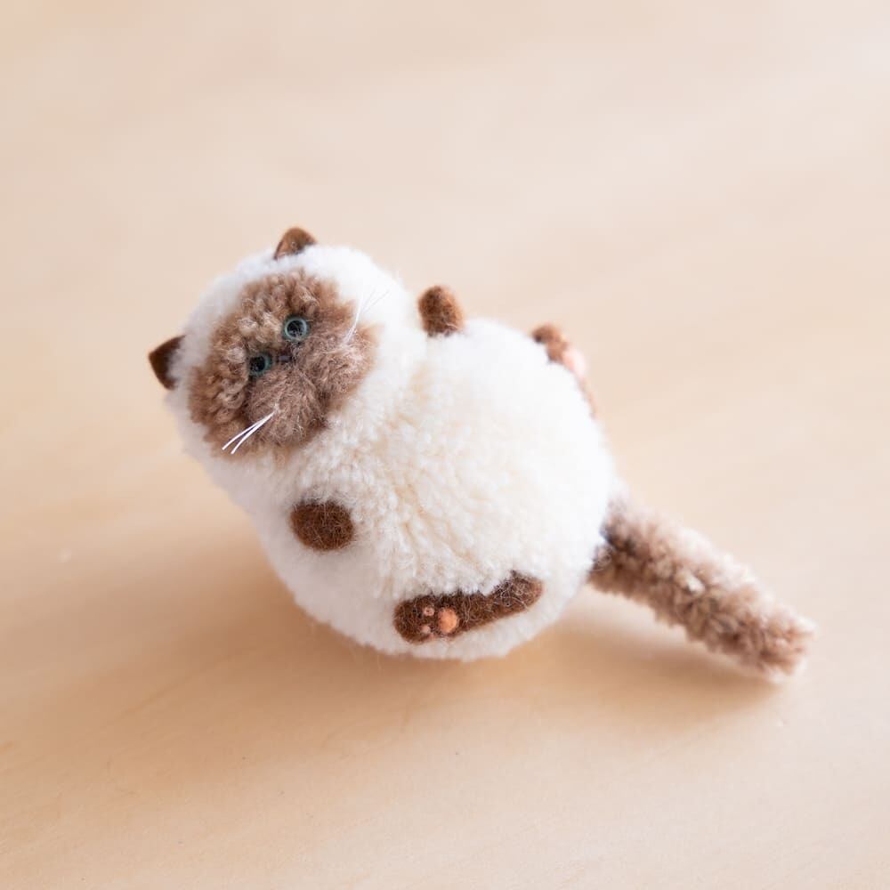 草木染めのポンポン猫 シャム(ねころがり)